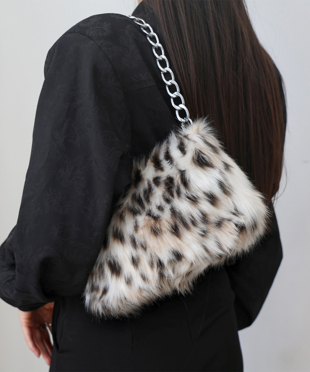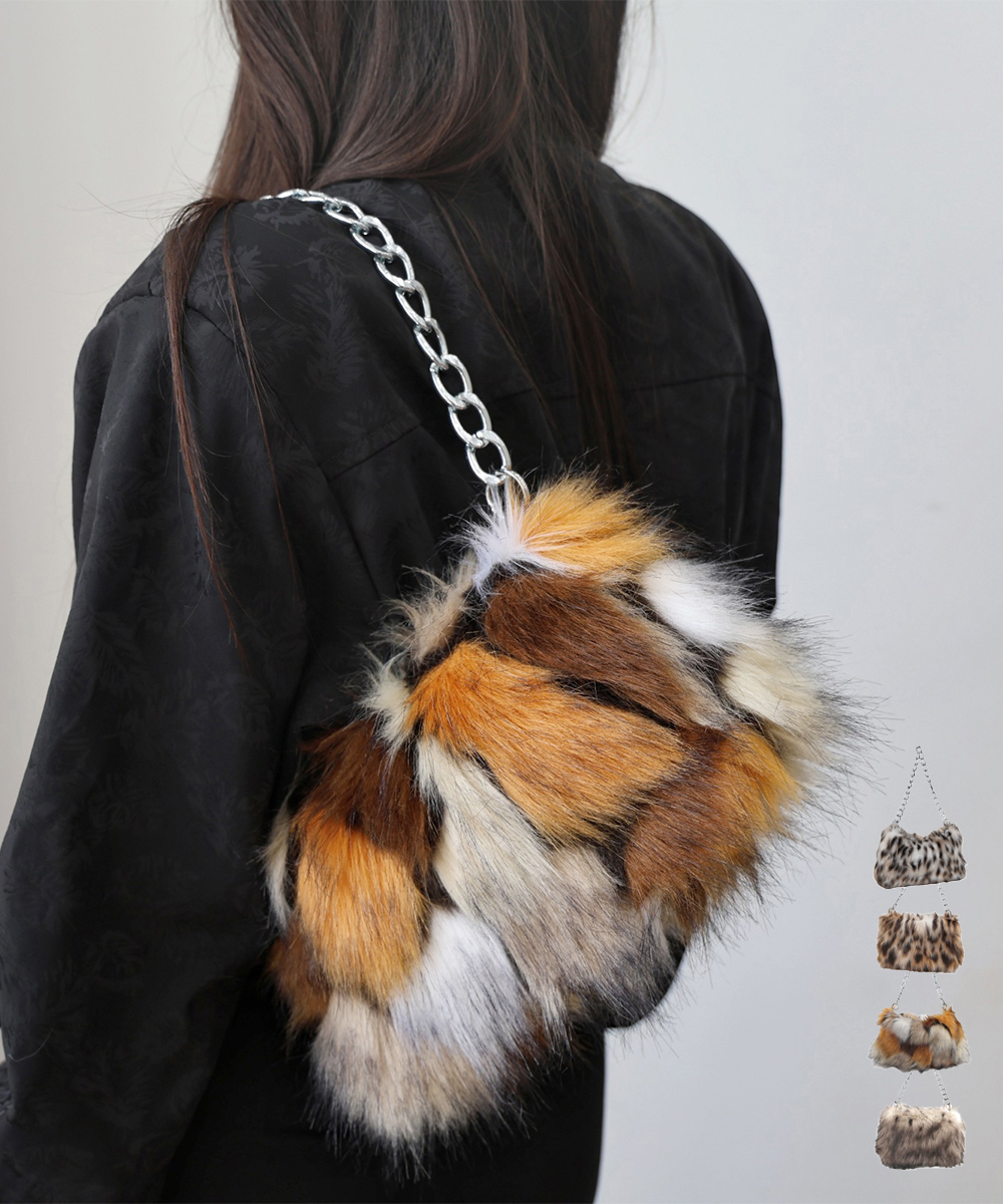 ボリューム感のあるエコファー素材のチェーン バッグ。