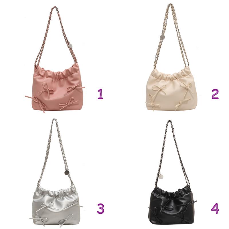 可愛らしいリボンモチーフが印象的な巾着型のチェーン バッグです。