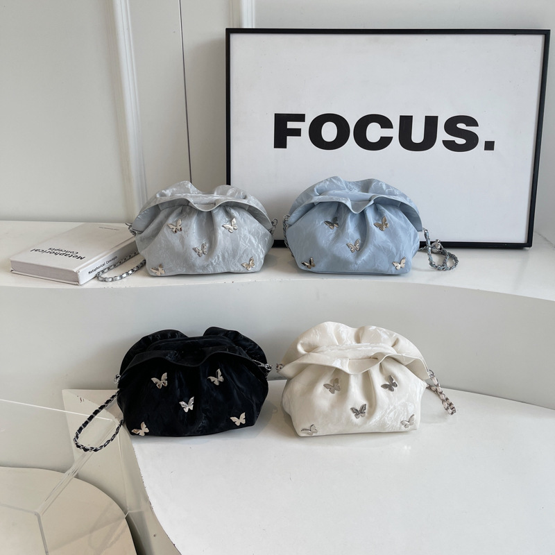 上品な蝶々モチーフが散りばめられたチェーン バッグです。